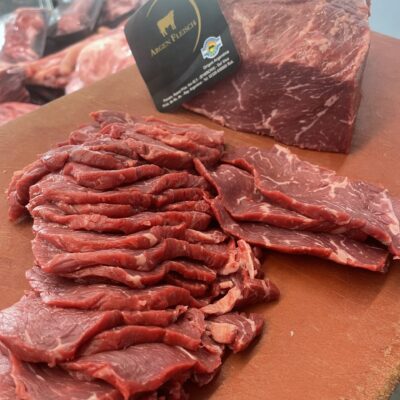 Picada de nuestros delanteros y cortes de chuleta de Minhota Portuguesa madurada envuelta en panceta ibérica de bellota.